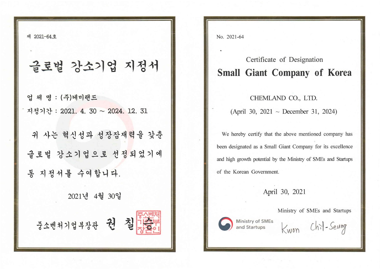 글로벌 강소기업 재인증 (21.04.30 ~ 24.12.31) 관리자 2021.06.01 |